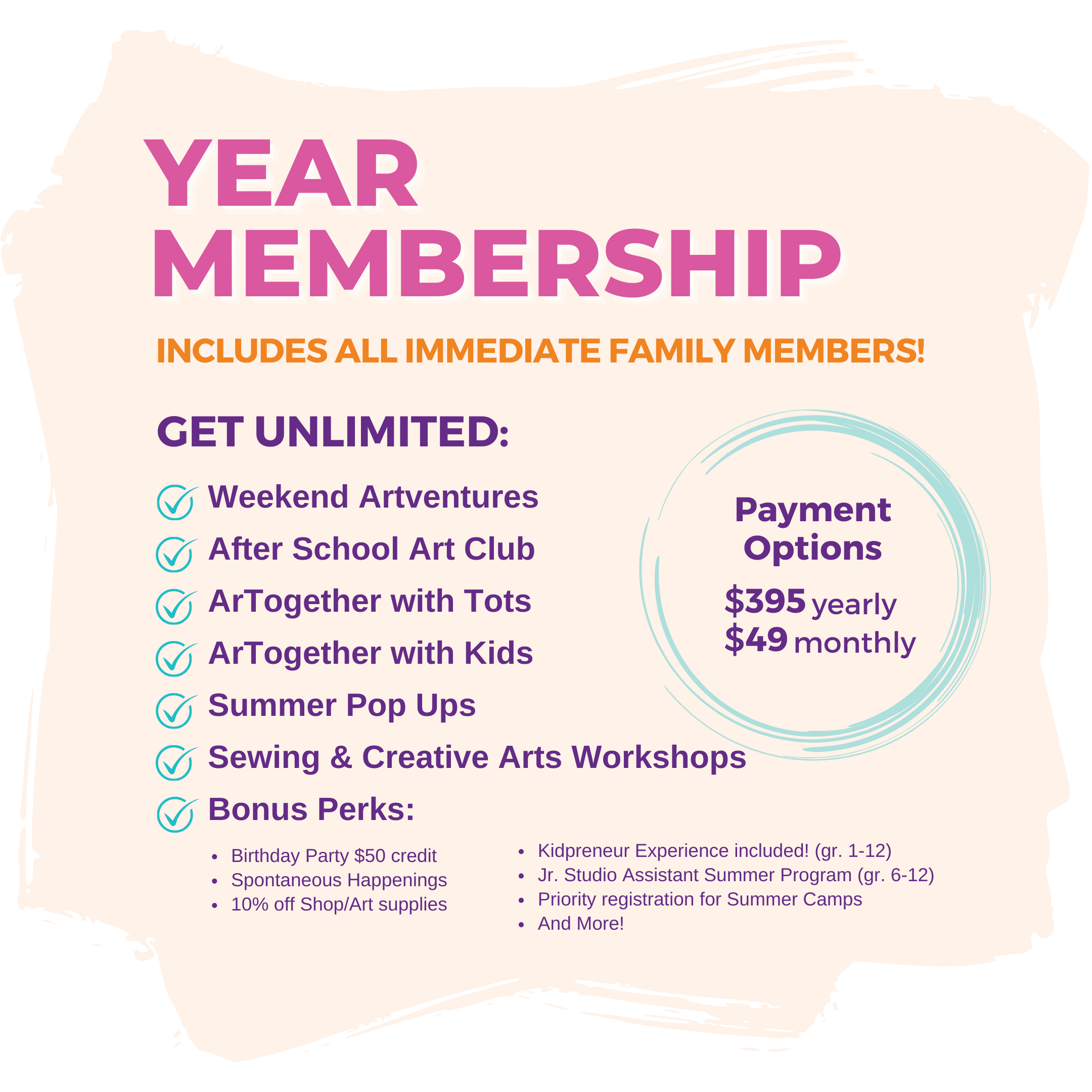 Passes can be applied to Cloud 9 Workshop programs including, Maker Studio, Art After Hours for Adults, ArTogether with Tots, ArTogether with Kids and After School Art Club.